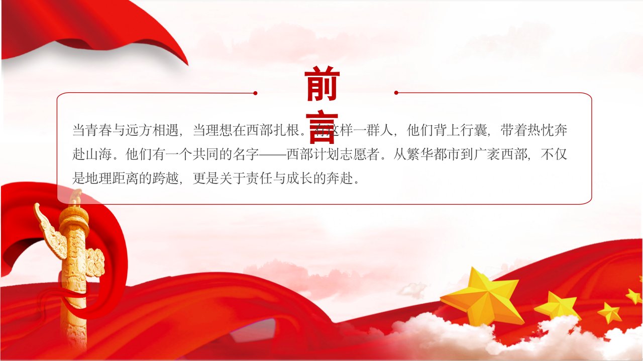 「治国理政ppt模板」大学生志愿服务西部去西部志青春党课ppt模板(含配套讲稿)