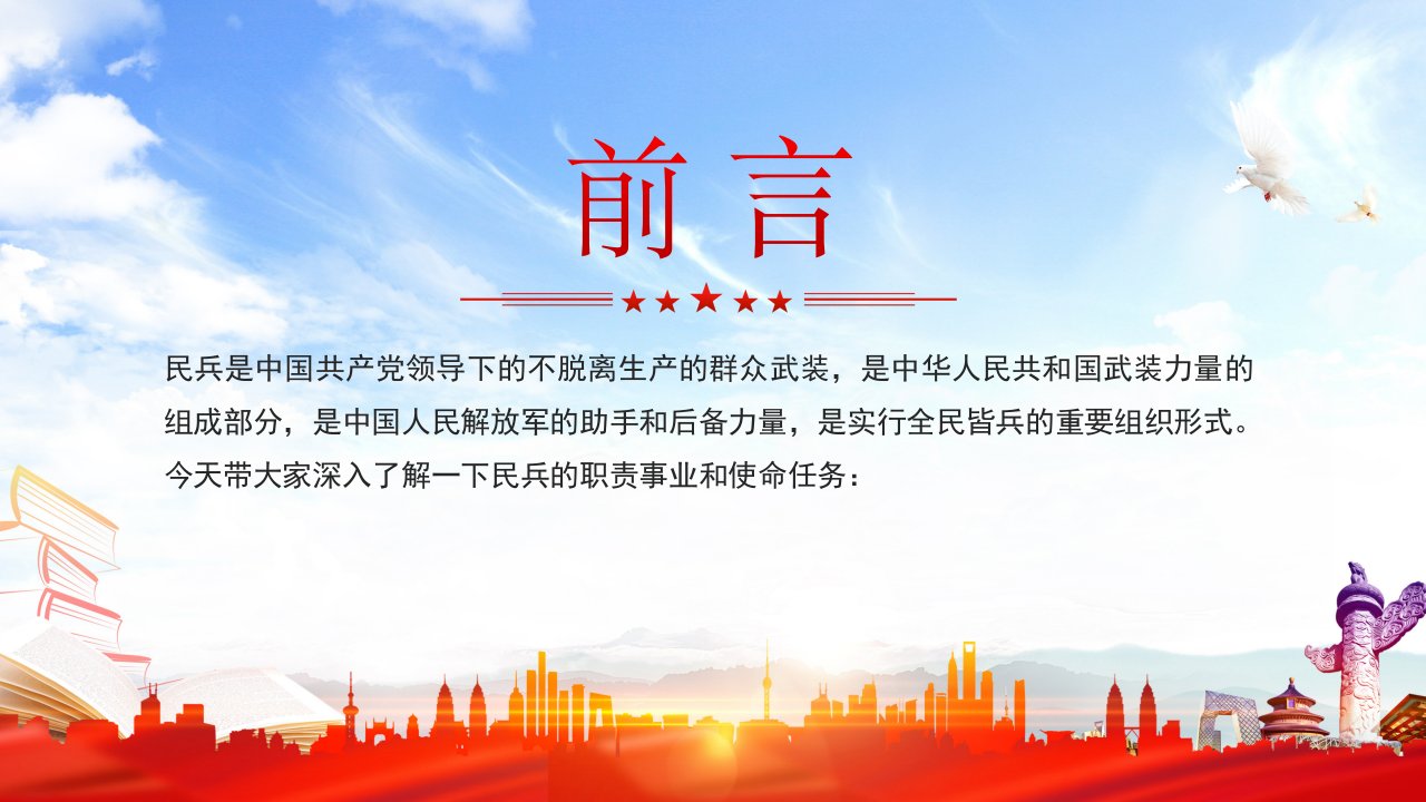 「治国理政ppt模板」民兵政治教育微课堂党课ppt模板(含配套讲稿)