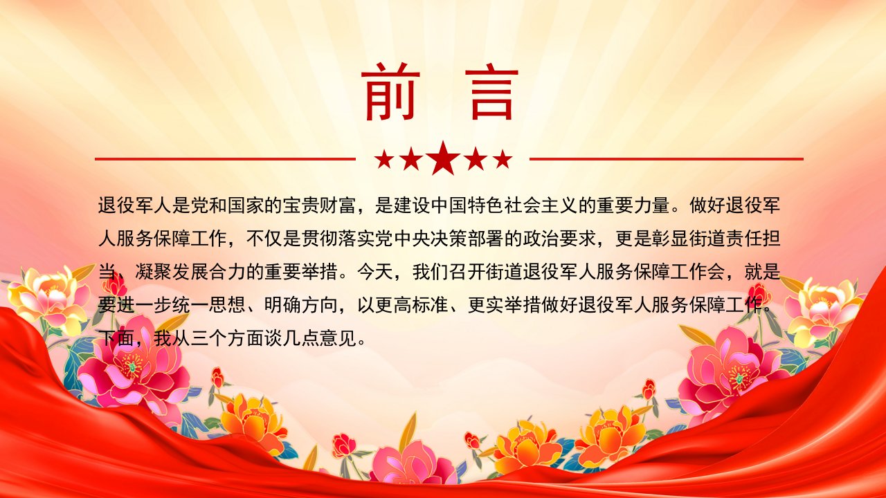 「治国理政ppt模板」在街道退役军人服务保障工作会上的讲话党课ppt模板(含配套讲稿)