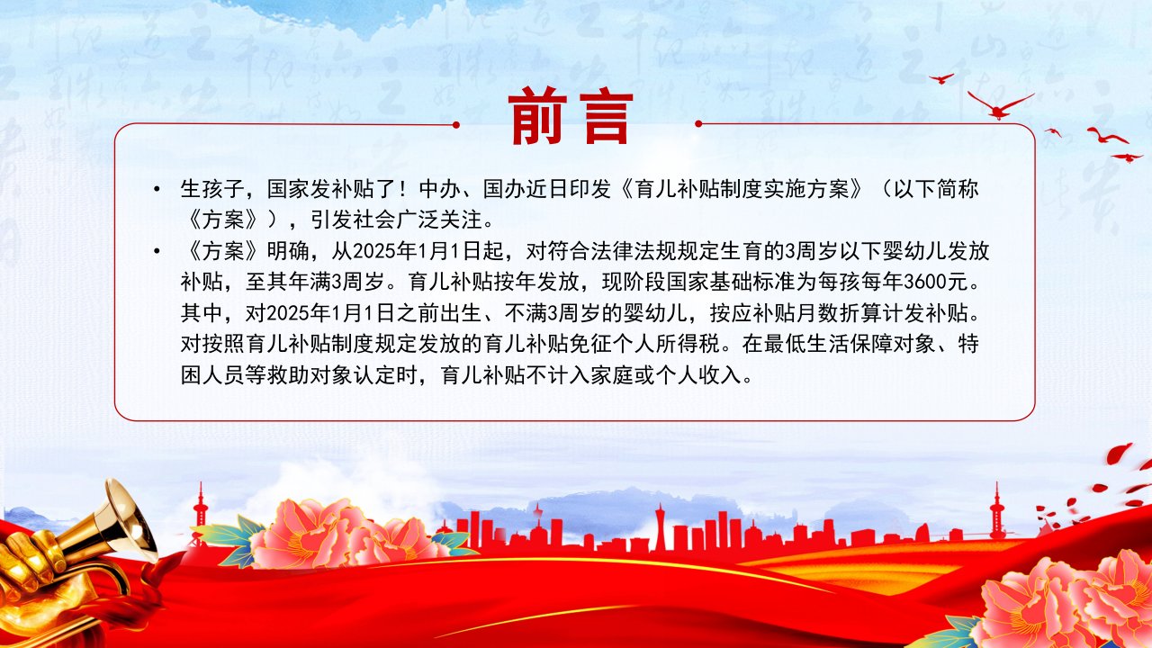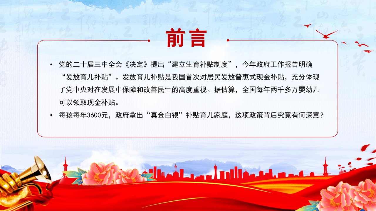「治国理政ppt模板」育儿补贴3600元背后的三重深意党课ppt模板(含配套讲稿)