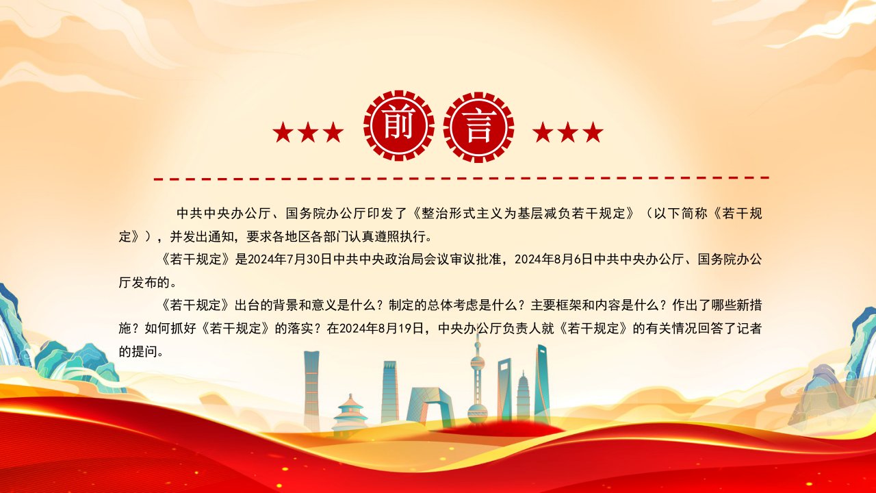 「治国理政ppt模板」解读《整治形式主义为基层减负若干规定》党课ppt模板(含配套讲稿)