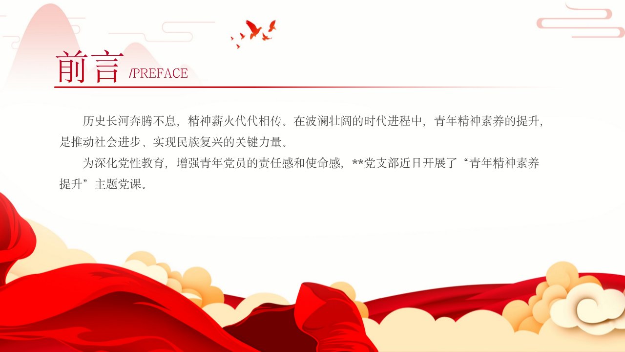 标题:「党性修养ppt模板」青年精神素养提升党课ppt模板(含配套讲稿)