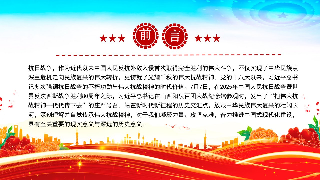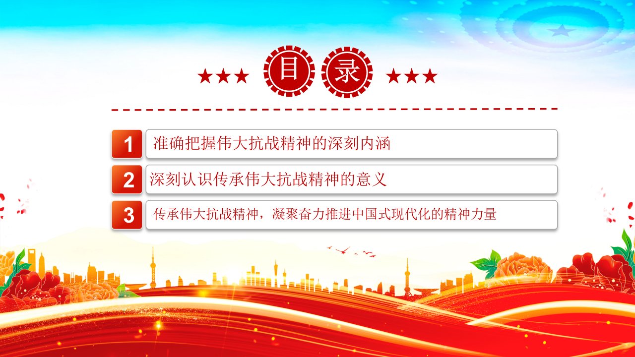 「精神谱系ppt模板」传承伟大抗战精神凝聚奋力推进中国式现代化的精神力量党课ppt模板(含配套讲稿)