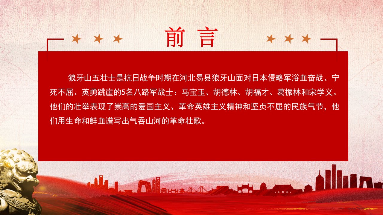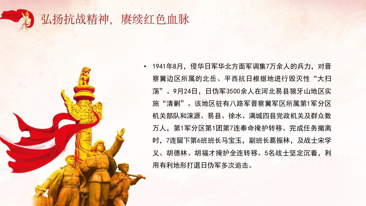 标题:「精神谱系ppt模板」纪念抗日民族英雄狼牙山五壮士党课ppt模板(含配套讲稿)