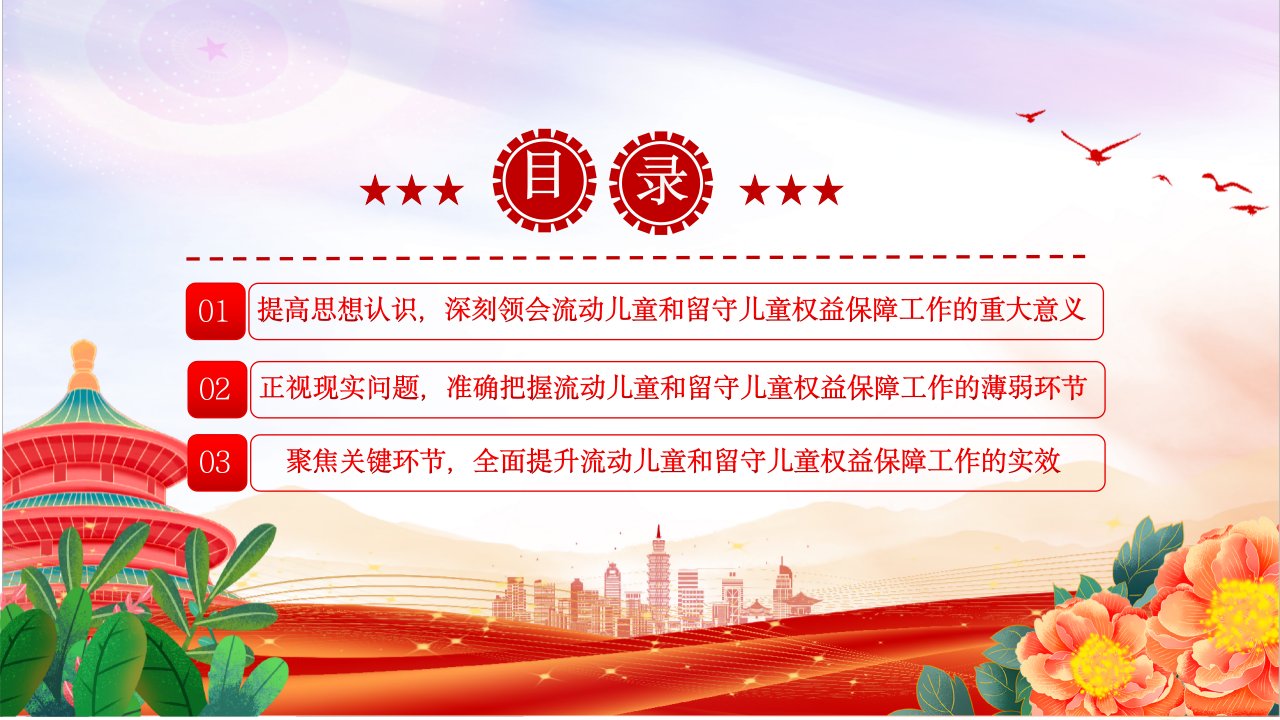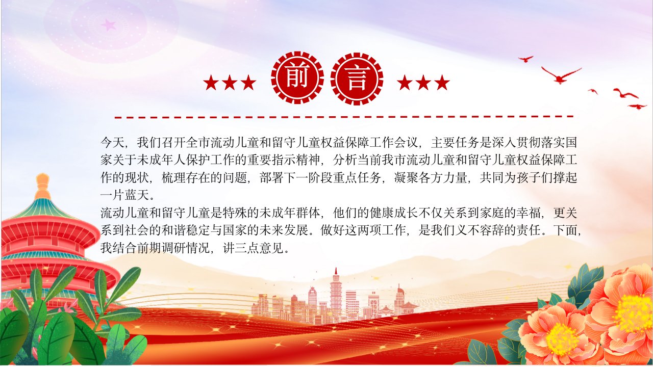 「治国理政ppt模板」在全市流动儿童和留守儿童权益保障工作会议上的讲话党课ppt模板(含配套讲稿)