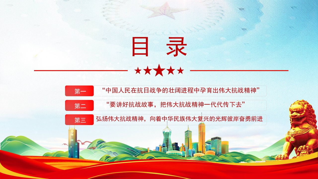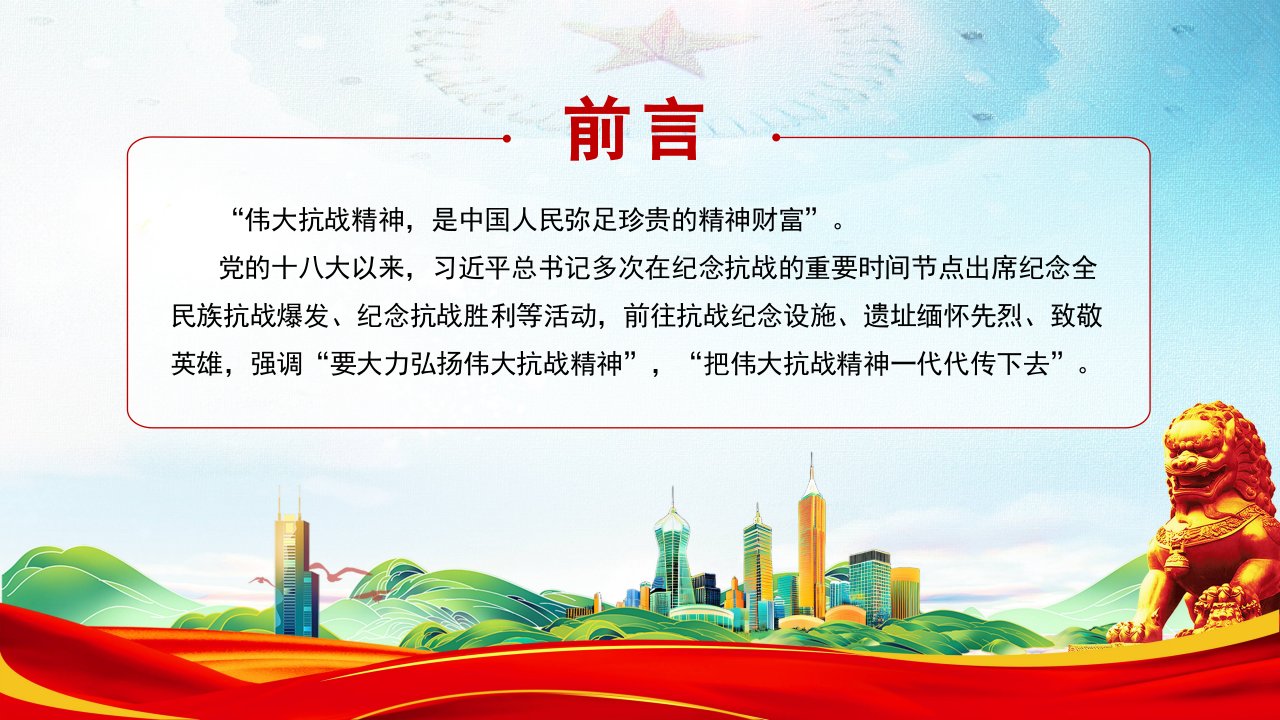 「抗战精神ppt模板」把伟大抗战精神一代代传下去纪念抗战胜利80周年党课ppt模板(含配套讲稿)
