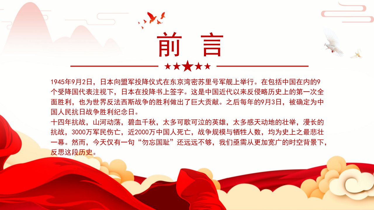 「抗战精神ppt模板」纪念抗战胜利80周年抗战史上的八个瞬间党课ppt模板(含配套讲稿)