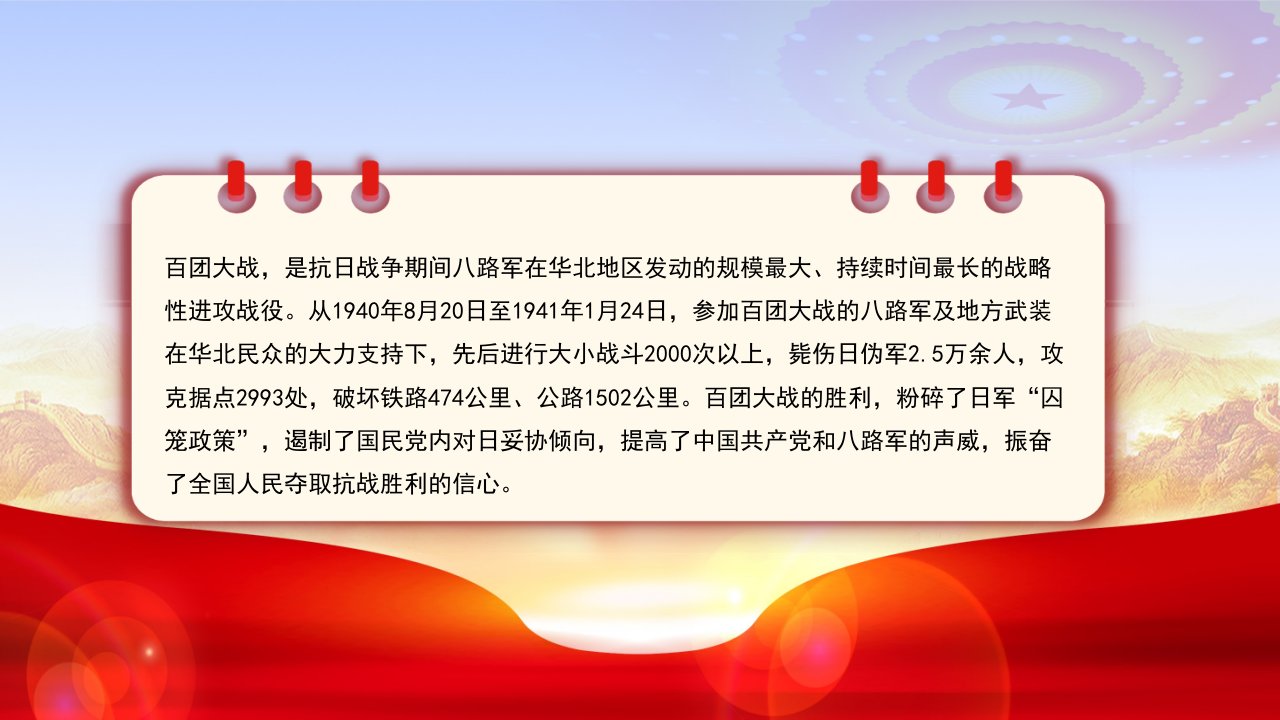 「抗日战争ppt模板」百团大战纪念抗日战争胜利80周年党课ppt模板(含配套讲稿)