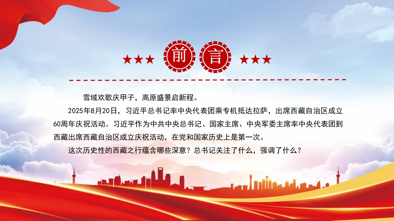 标题:「西藏之行ppt模板」总书记的西藏之行强调了什么党课ppt模板(含配套讲稿)