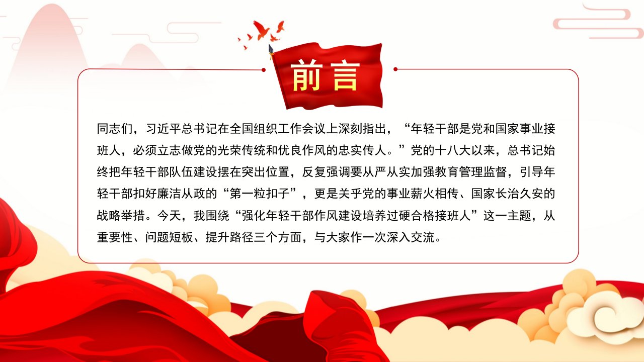 「作风建设ppt模板」强化年轻干部作风建设培养过硬合格接班人党课ppt模板(含配套讲稿)