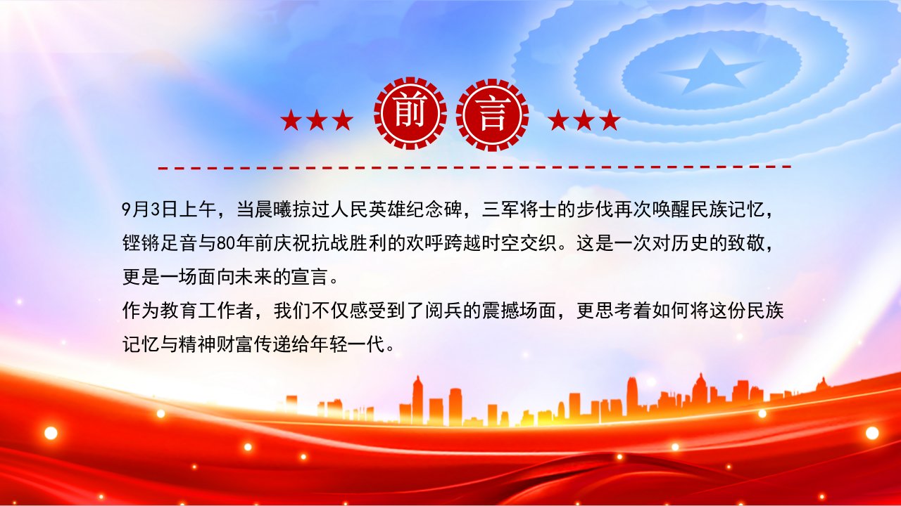 「九三阅兵ppt模板」铭记历史缅怀先烈珍爱和平开创未来九三阅兵党课ppt模板(含配套讲稿)