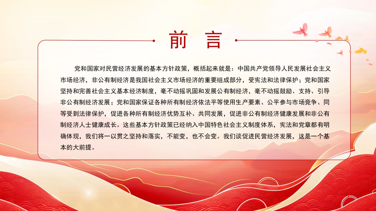 「治国理政ppt模板」促进民营经济健康发展高质量发展总书记在民营企业座谈会上讲话党课ppt模板(含配套讲稿)