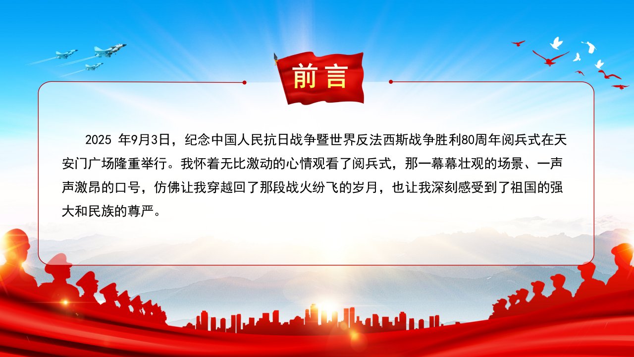 党课ppt,党课ppt模板,周年,观后感,党课,抗日战争胜利,抗日战争,ppt模板2025微党课「九三阅兵ppt模板」九三阅兵观后感纪念抗日战争胜利80周年党课ppt模板(含配套讲稿)党课ppt,党课ppt模板,周年,观后感,党课,抗日战争胜利,抗日战争,ppt模板2025微党课「九三阅兵ppt模板」九三阅兵观后感纪念抗日战争胜利80周年党课ppt模板(含配套讲稿)