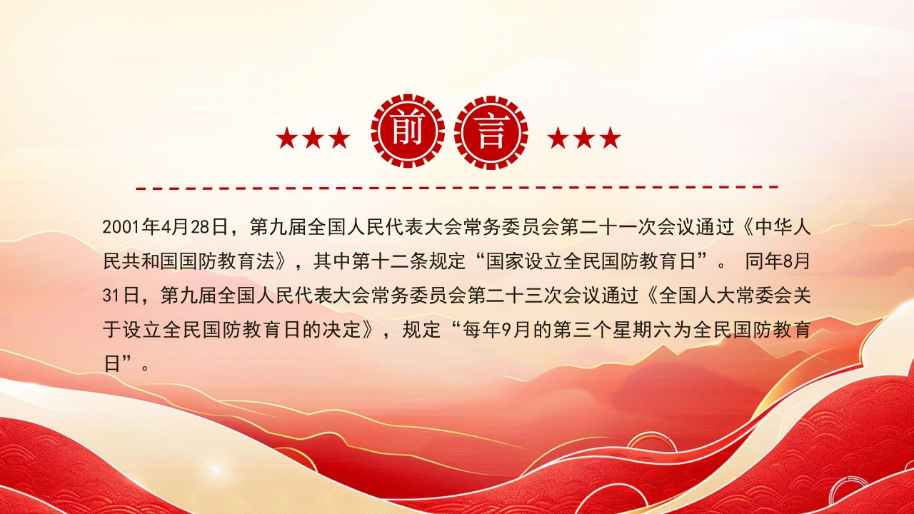 「全民国防教育ppt」全民国防教育月弘扬抗战精神共筑国防长城党课ppt模板(含配套讲稿)