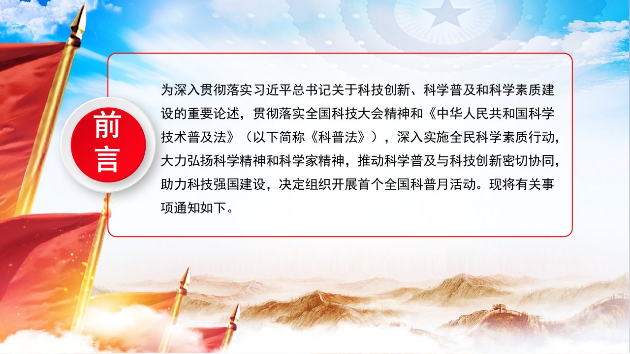 「全国科普月ppt」首个全国科普月提升全民科学素质夯实科技强国基础党课ppt模板(含配套讲稿)