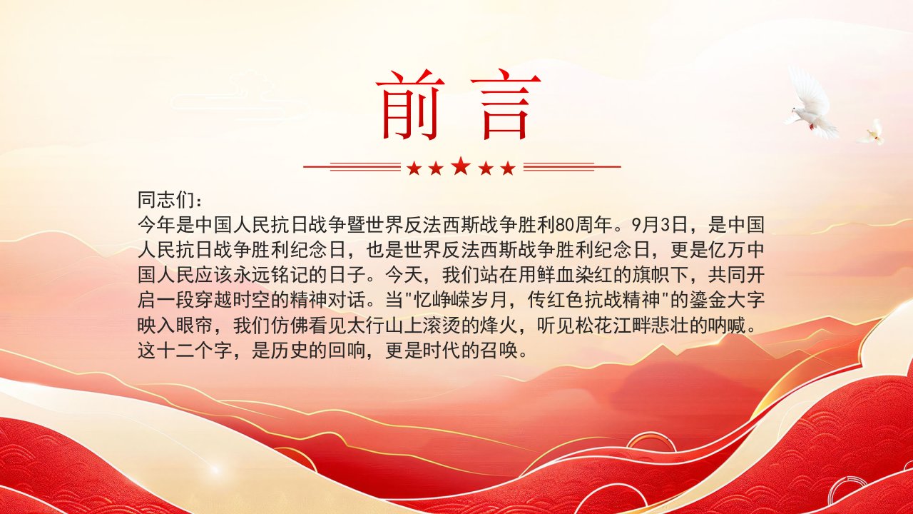 2025微党课「抗战精神ppt模板」忆峥嵘岁月传红色抗战精神抗战胜利80周年党课ppt模板(带内容)