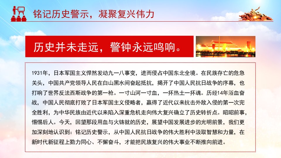 2025微党课「党史历史ppt模板」铭记历史警示凝聚复兴伟力纪念抗战胜利80周年党课ppt模板(含配套讲稿)