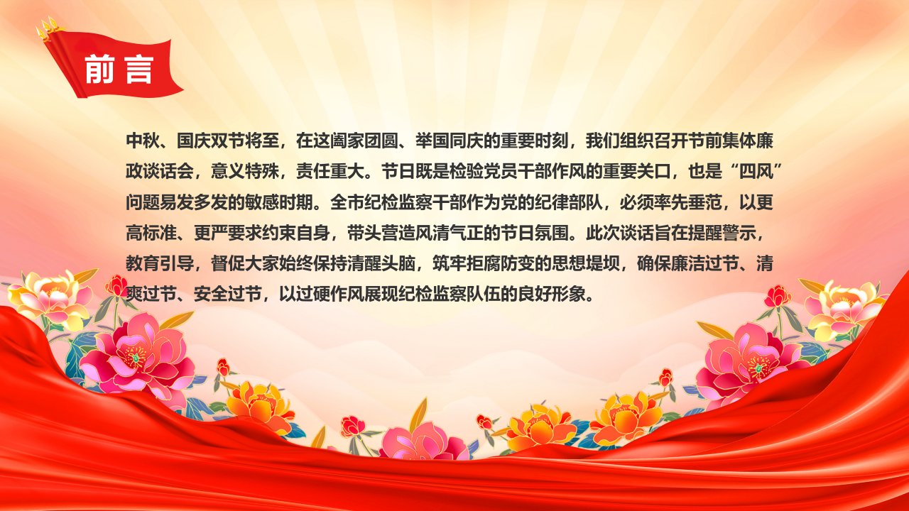 2025微党课「廉洁反腐ppt模板」中秋国庆双节前党课筑牢思想防线恪守清廉本色党课ppt模板(含配套讲稿)