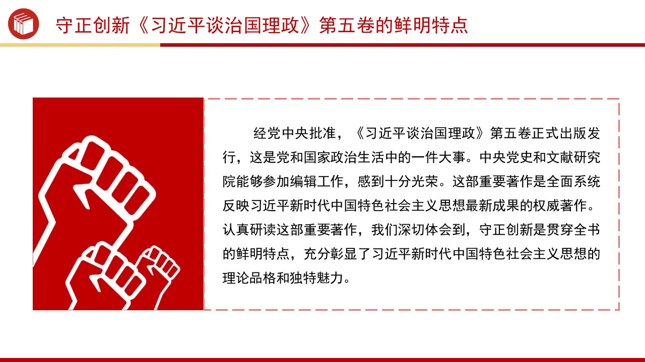 「治国理政ppt模板」《习近平谈治国理政》第五卷的鲜明特点党课ppt模板(含配套讲稿)