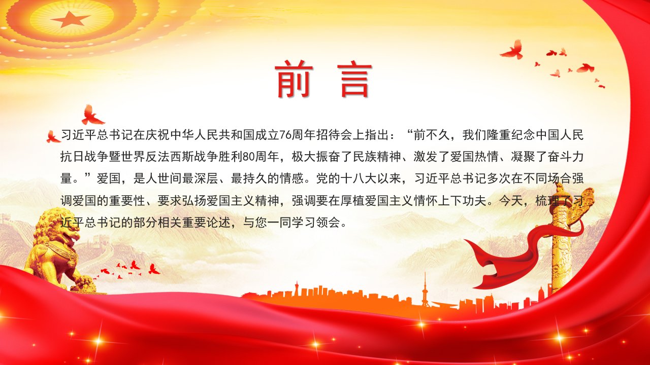 2025微党课「爱国主义ppt模板」爱国主义是我们民族精神的核心总书记重要论述党课ppt模板(含配套讲稿)