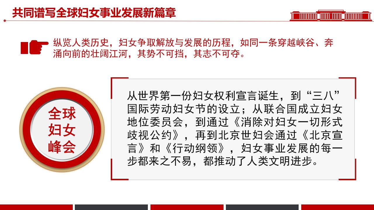 2025微党课「治国理政ppt模板」共同谱写全球妇女事业发展新篇章全球妇女峰会党课ppt模板(带内容)