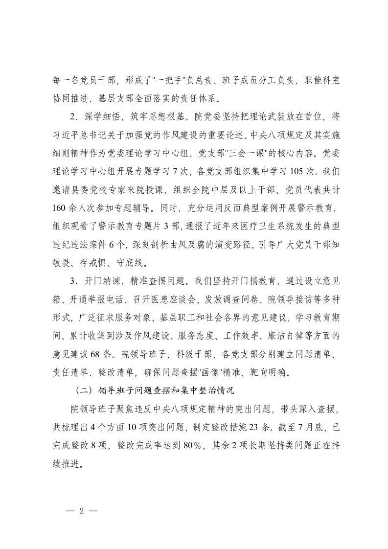 标题:医院党委关于神学习教育查摆问题集中整治情况的报告医院学习教育总结报告