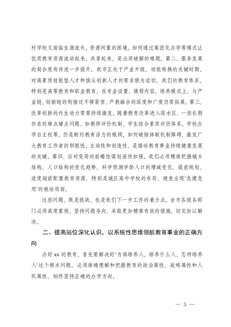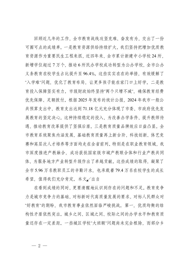 标题:在市全市教育工作专题会议上的讲话在2025年教育工作座谈会上的讲话