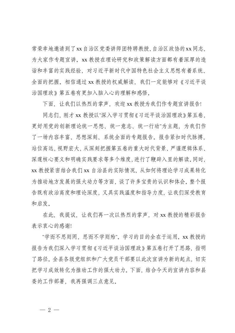 主持词,习近平谈治国理政,习近平谈,治国理政,专题在习近平谈治国理政第五卷走基层示范宣讲会某县专场上的主持稿第五卷专题宣讲会上的主持词主持词,习近平谈治国理政,习近平谈,治国理政,专题在习近平谈治国理政第五卷走基层示范宣讲会某县专场上的主持稿第五卷专题宣讲会上的主持词