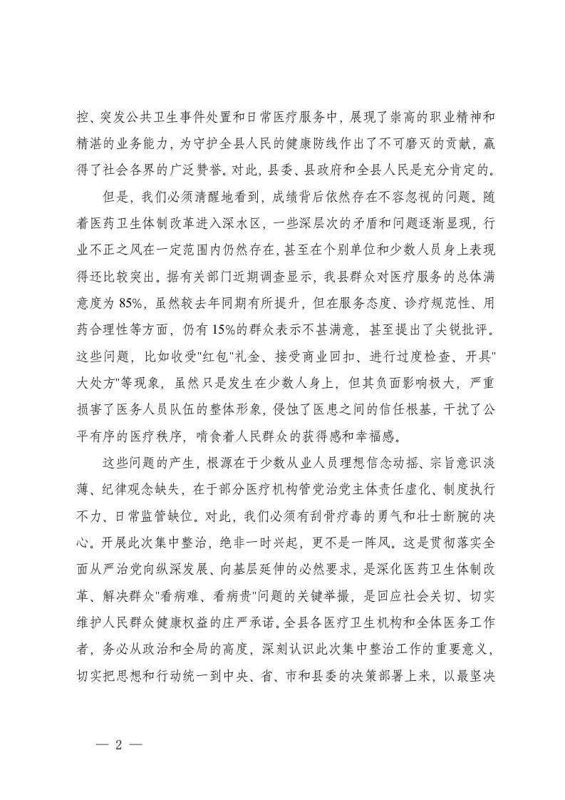 在县医疗卫生机构医德医风有关问题集中整治工作部署会议上的讲话医院党委2025年前三季度党建工作总结