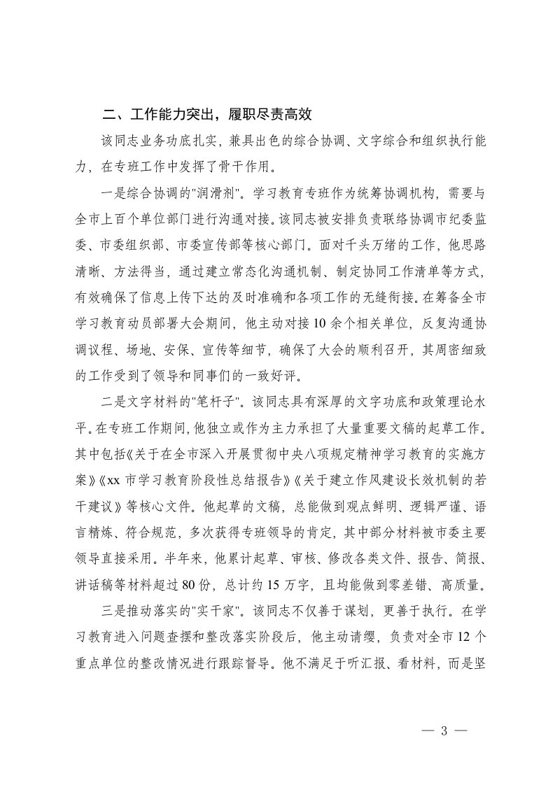 标题:2025年抽调人员在学习教育专班期间表现的鉴定材料学习教育总结报告