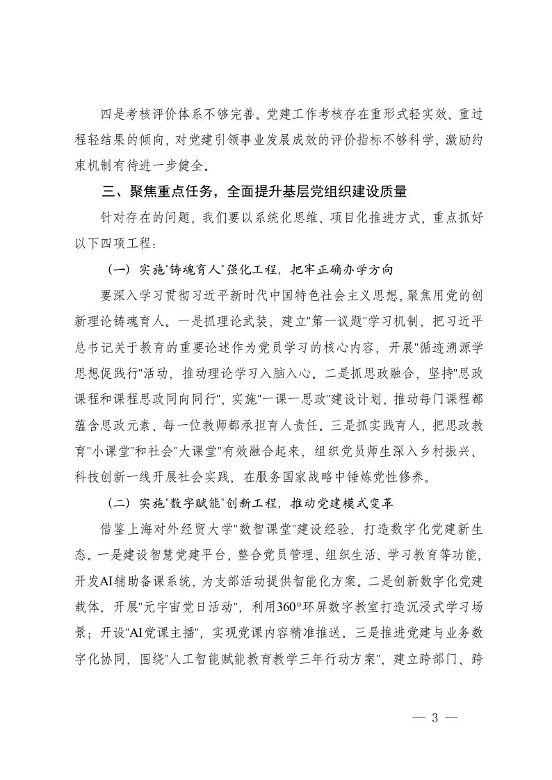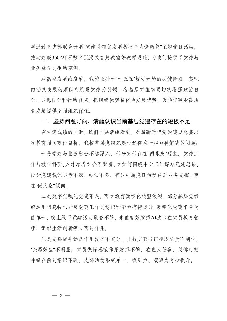 标题:2025年在高校基层党组织建设质量提升工作推进会上的讲话