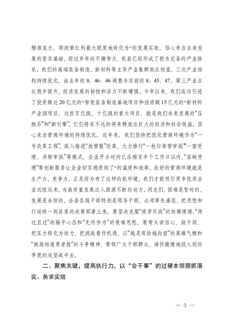 标题:2025年在县委常委会扩大会议暨提振精气神提高执行力大干四季度动员大会上的讲话