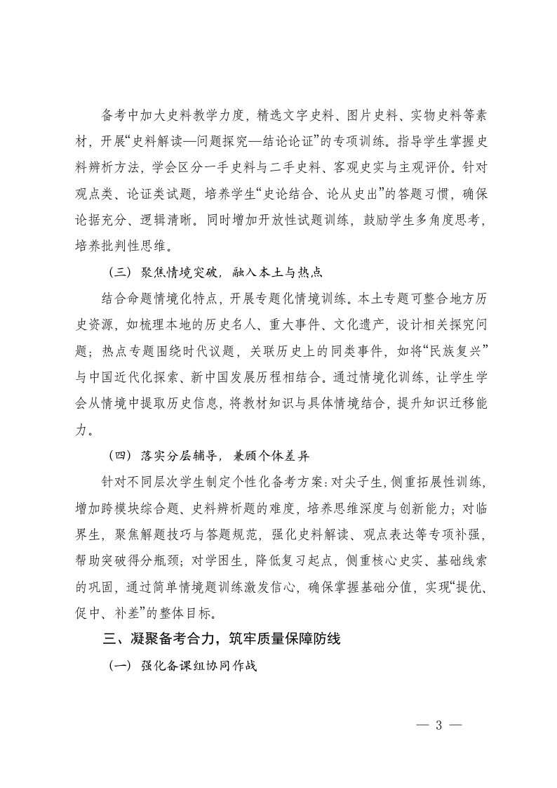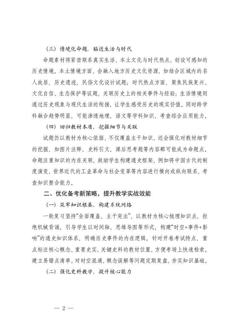 标题:2026年初中历史学业水平考试研讨会发言材料
