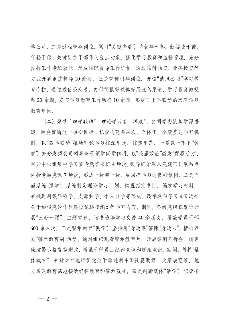 标题:国有企业党委书记在学习教育总结会议评估座谈会总结大会上的讲话