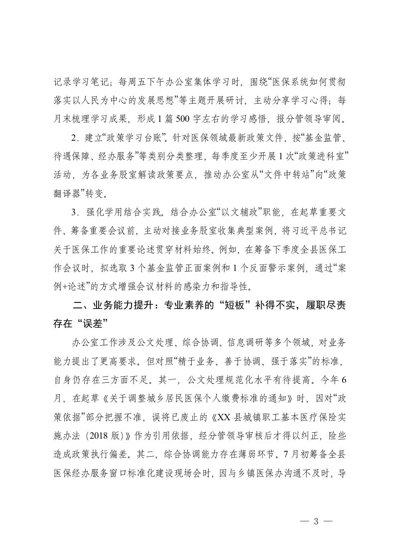 标题:县医保局年轻干部自查问题清单及整改措施市直机关学习教育回头看情况报告