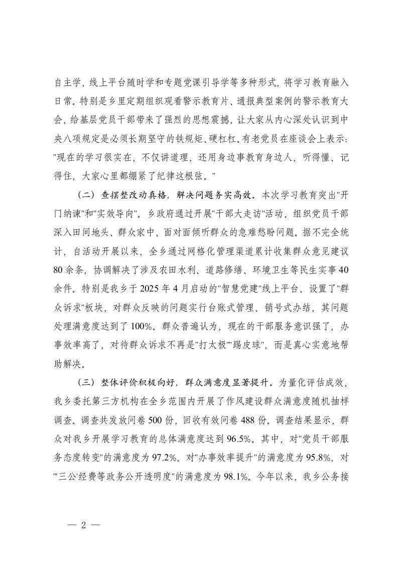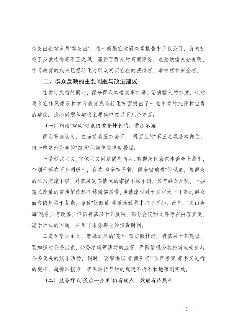 标题:乡镇深入贯彻学习教育群众评估报告学习教育专班对学习教育督导反馈意见