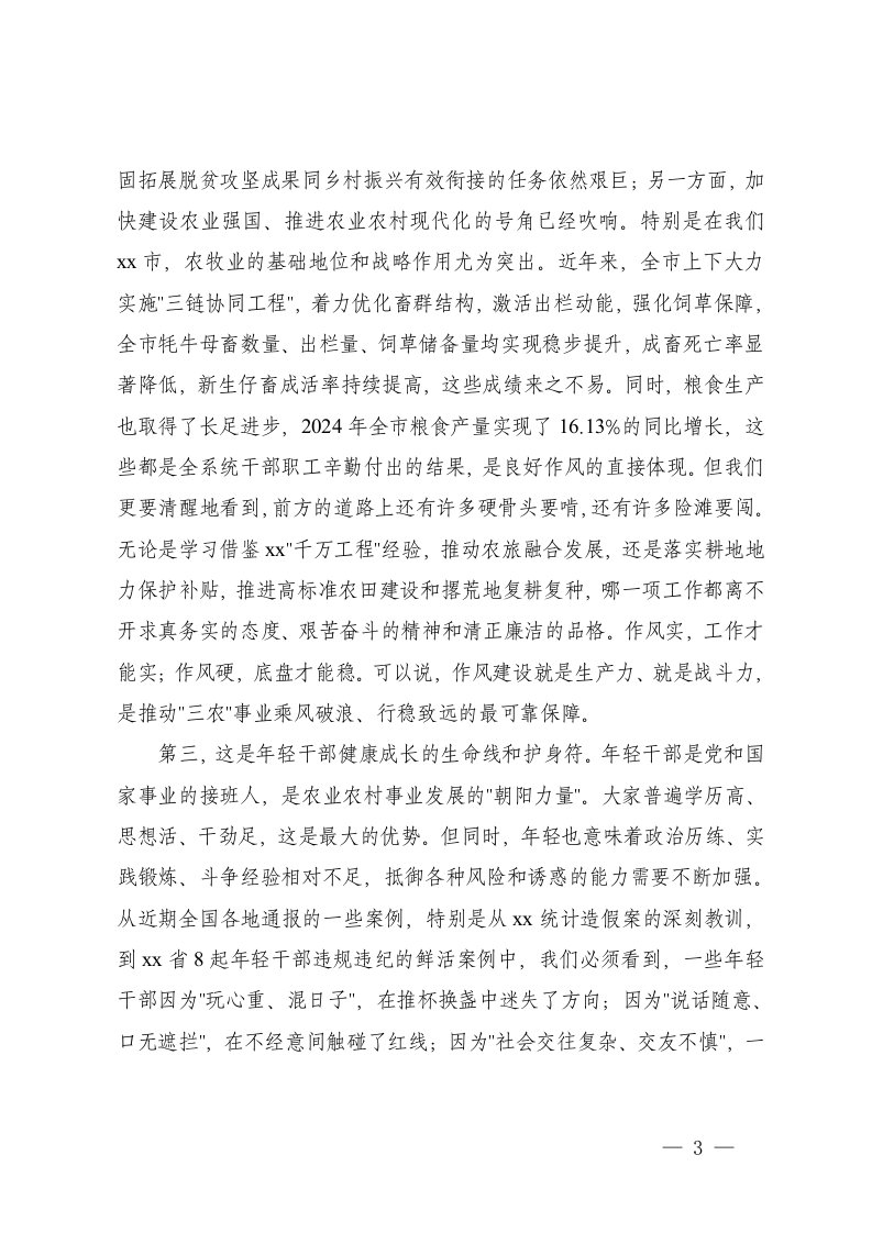 在农业农村系统学习教育专题会暨年轻干部座谈会上的讲话在全县专题党课暨年轻干部座谈会上的讲话
