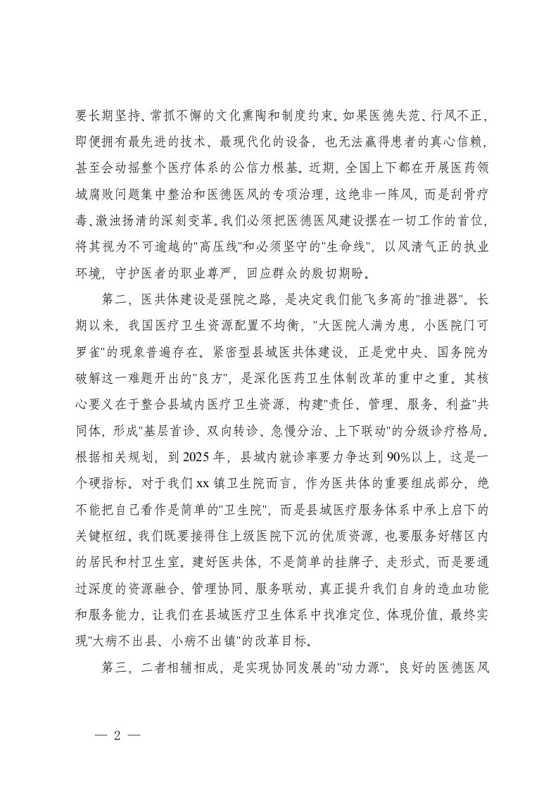 教育,工作,讲话,学习教育,卫生,学习在卫生院党纪学习教育暨医德医风专项提升行动动员部署会上的讲话在xx镇卫生院紧密型医共体与医德医风工作推进会上的讲话教育,工作,讲话,学习教育,卫生,学习在卫生院党纪学习教育暨医德医风专项提升行动动员部署会上的讲话在xx镇卫生院紧密型医共体与医德医风工作推进会上的讲话
