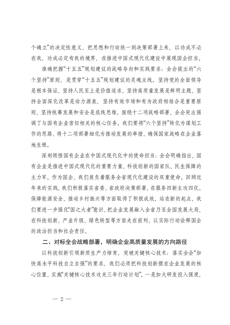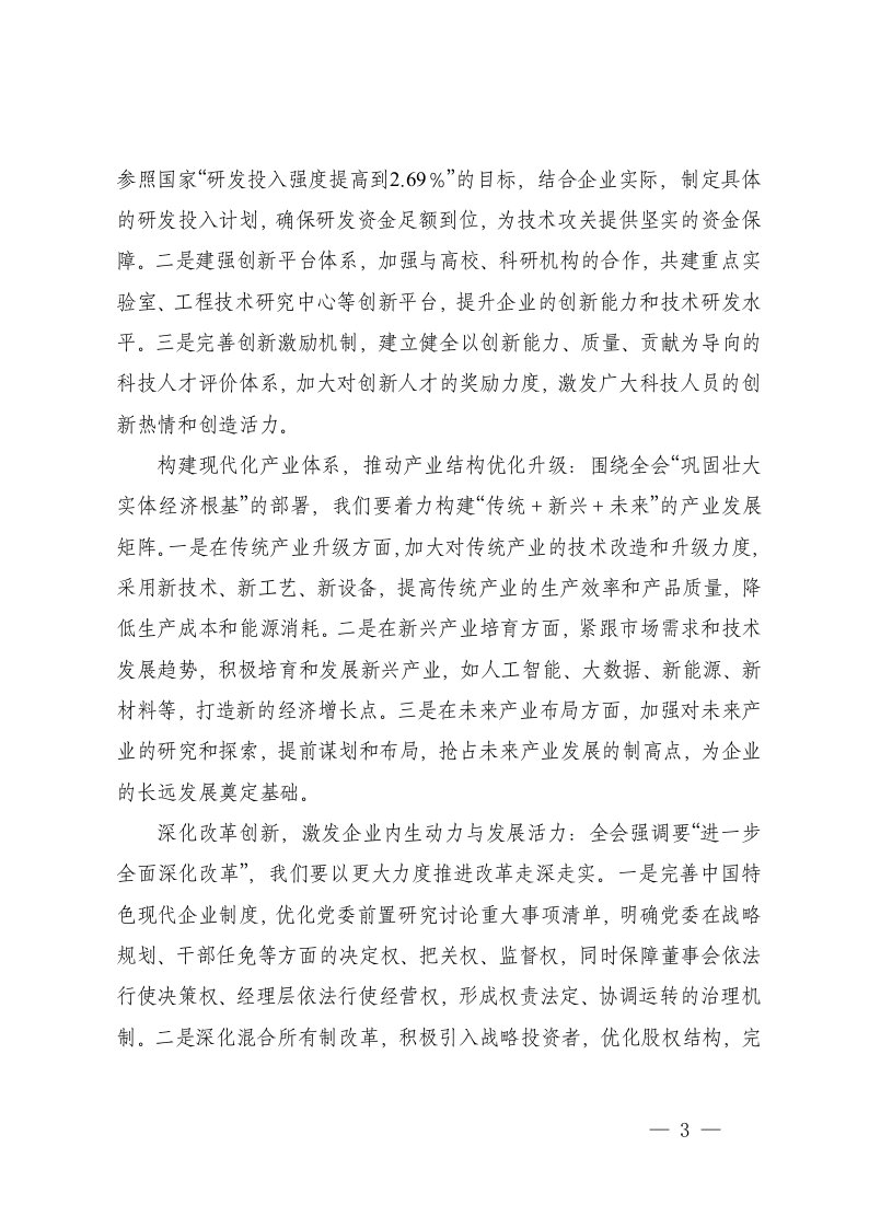 标题:2025年国企党委书记中心组学习党的二十届四中全会精神总结讲话