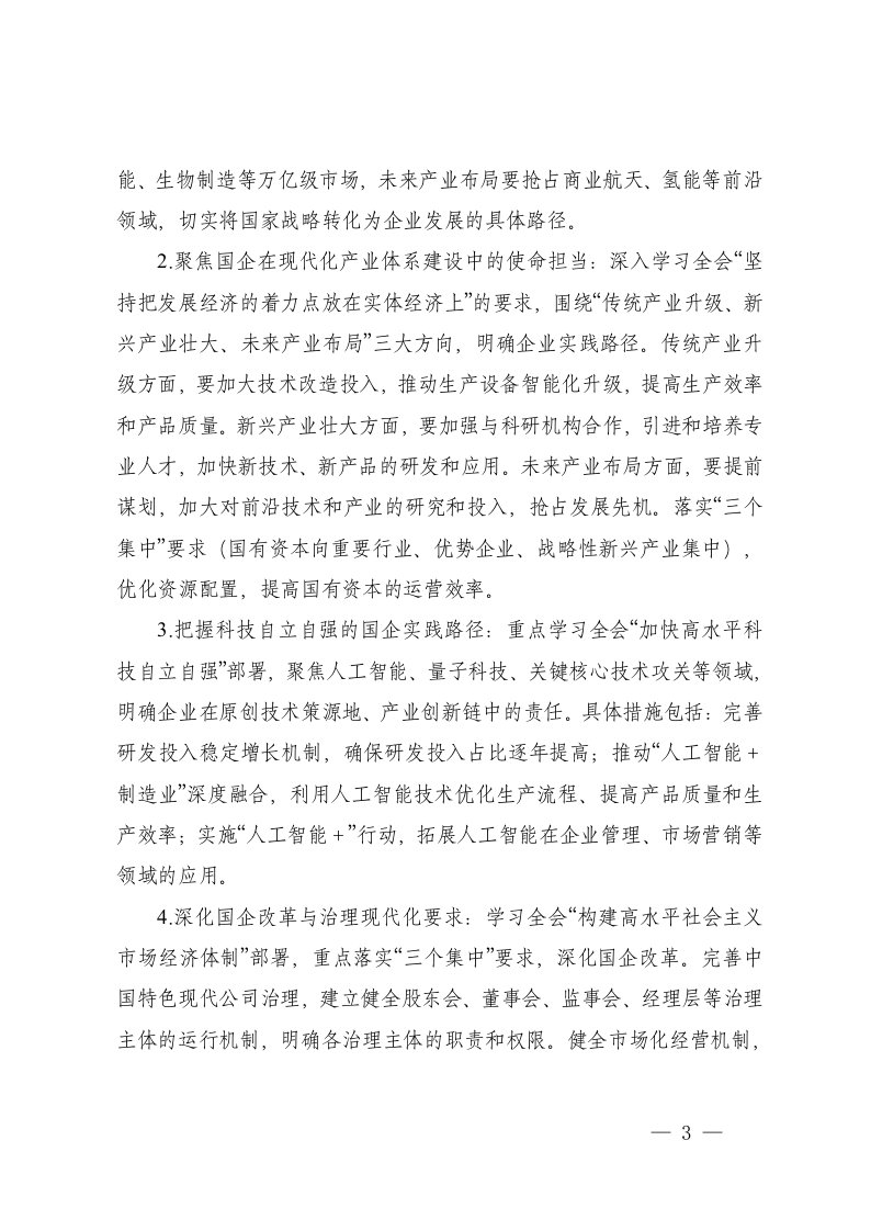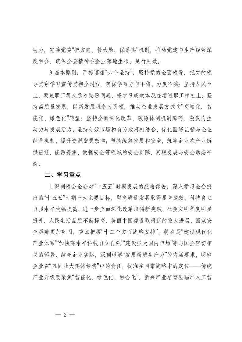 标题:2025年国企党委学习党的二十届四中全会精神工作方案