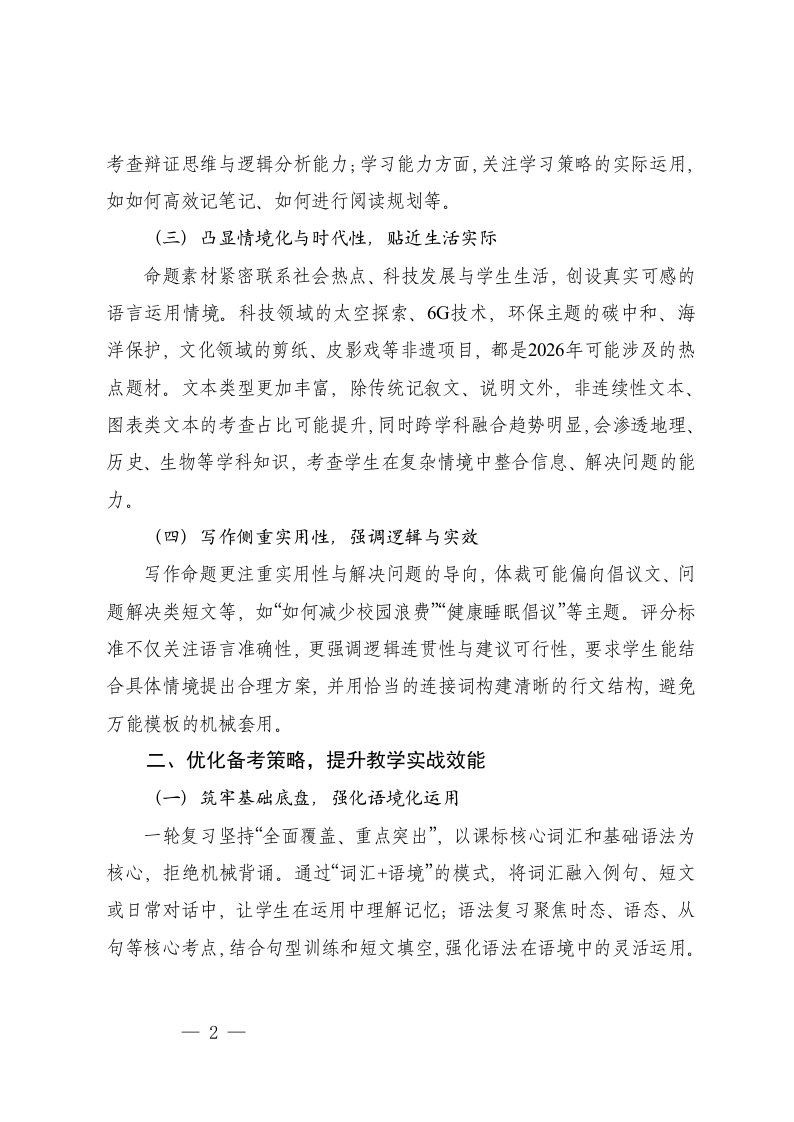 标题:2026年初中英语学业水平考试研讨会发言材料 (1)