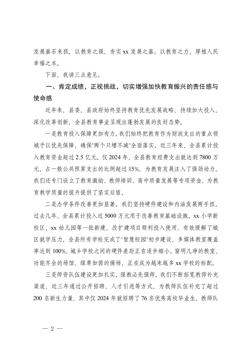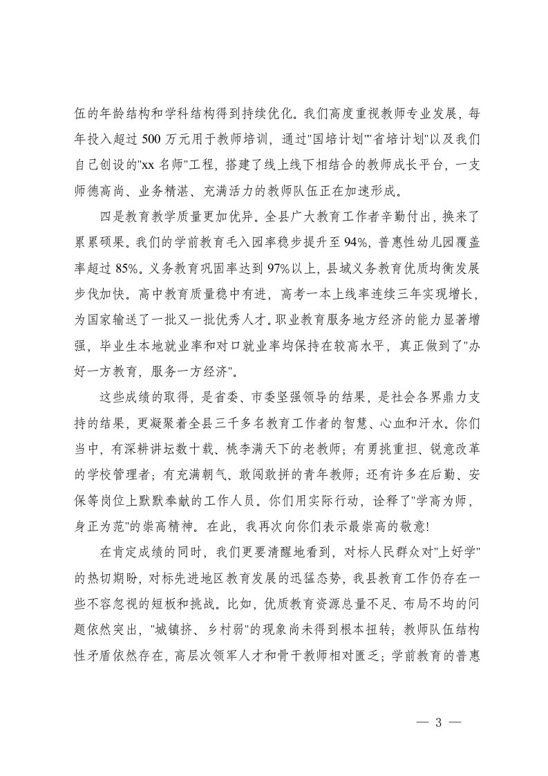标题:2026年在全县庆祝第42个教师节暨加快教育振兴工作会议上的讲话