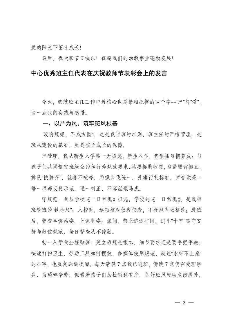 标题:中心优秀班主任代表班主任在庆祝教师节表彰会上的发言