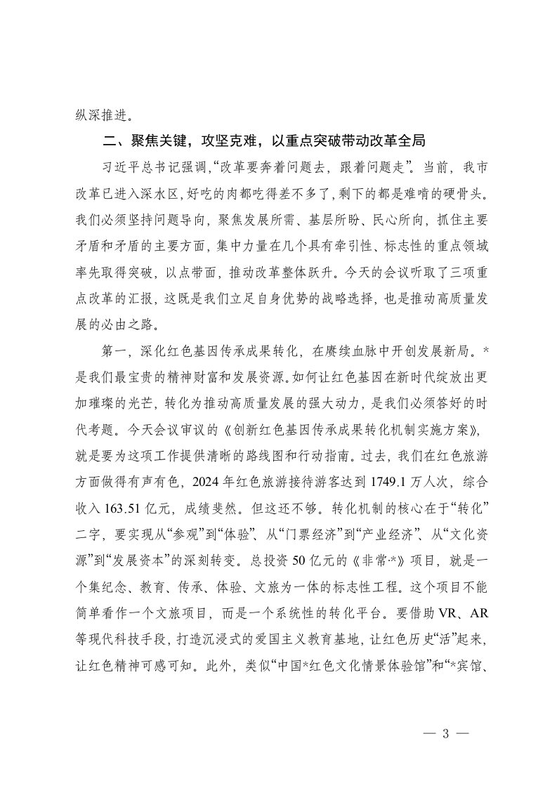标题:3篇在2025年市委全面深化改革委员会专题会议上的讲话