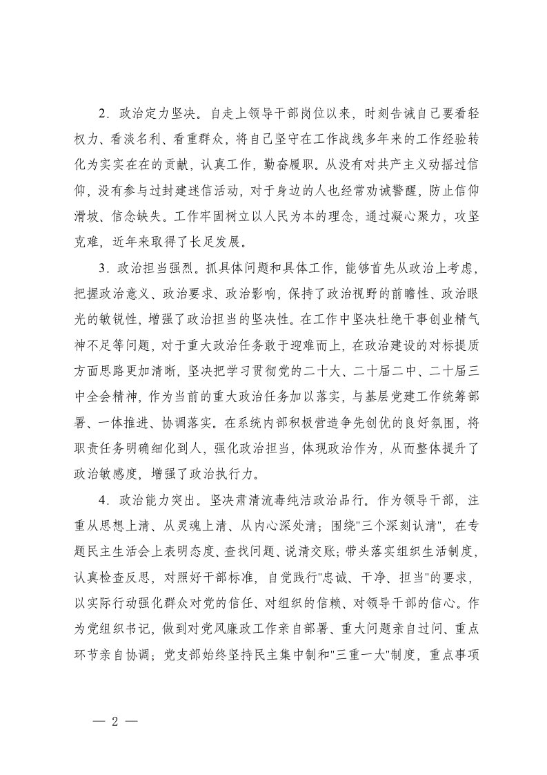 标题:2025年领导干部个人政治建设自评报告