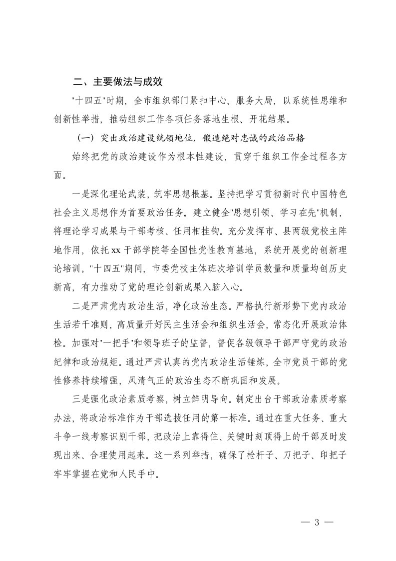 标题:2025年市委组织部十四五时期组织工作完成情况报告