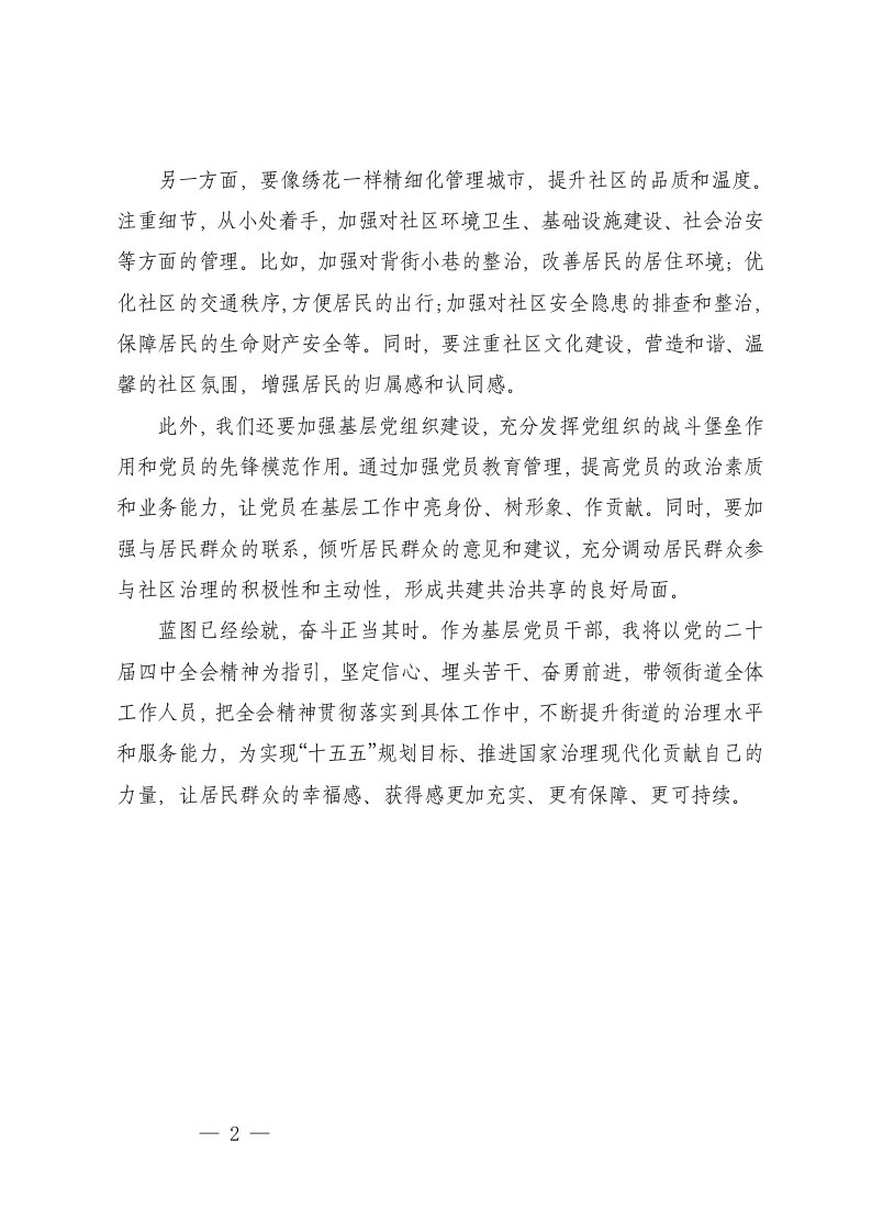 标题:街道基层党员干部学习党的二十届四中全会精神心得体会