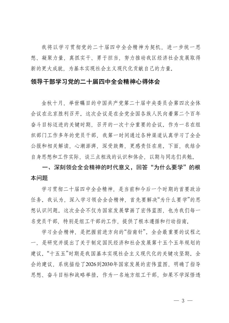标题:适合区长领导干部市委书记学习党的二十届四中全会精神心得体会