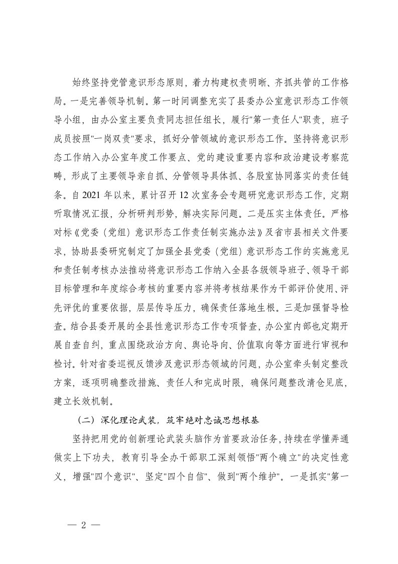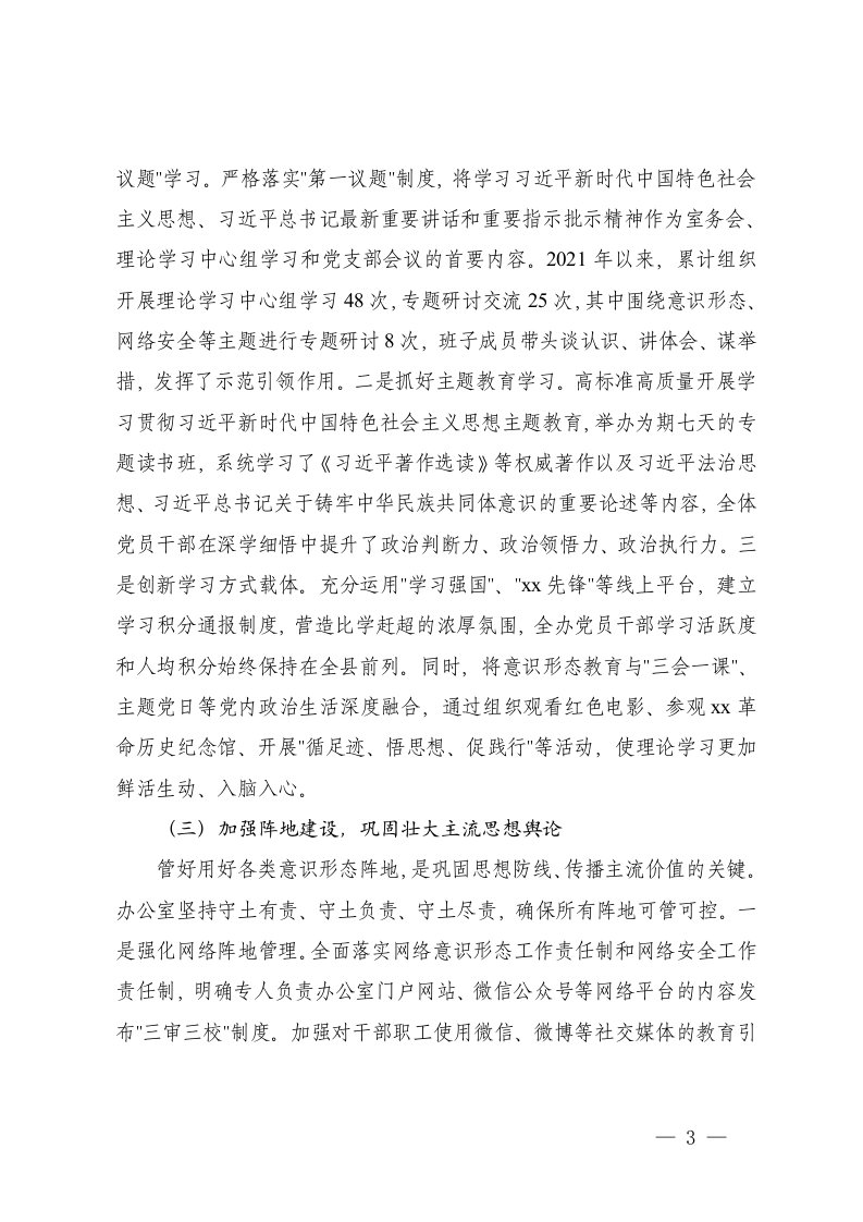 县委办公室2021年以来意识形态工作专题汇报第三季度意识形态工作的调研报告