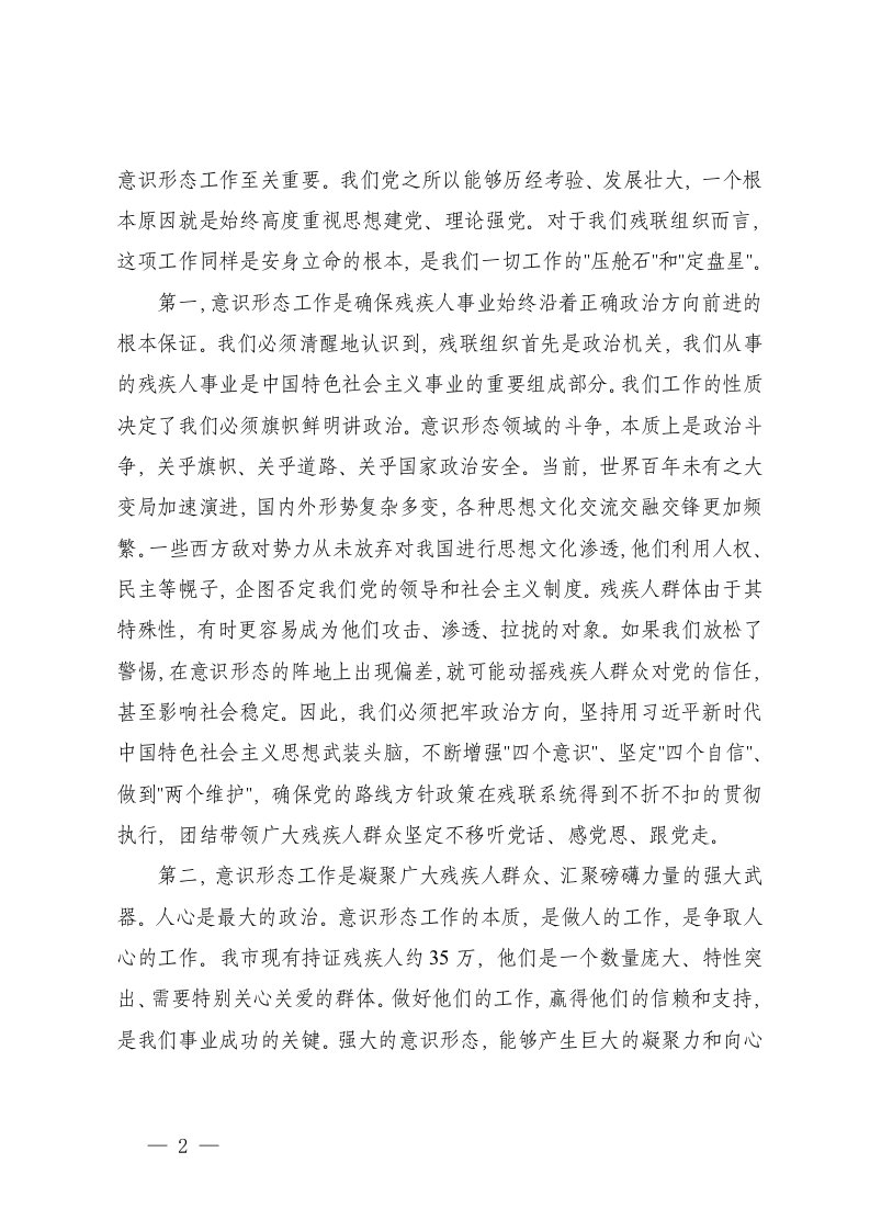 2025年认识意识形态工作极端重要性不断推进残疾人工作提质增效专题党课讲稿党支部2025年前三季度落实意识形态工作责任制情况总结